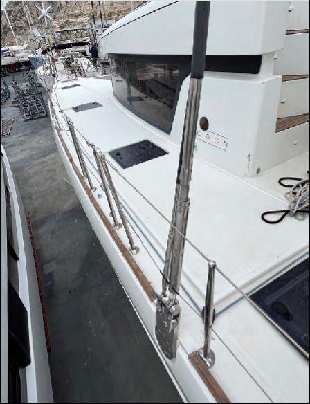 Motorisé par deux Yanmar 4JH4-TE de 75 CV (environ 2300 heures), avec saildrives protégés et hélices tripales repliables, ce 52F combine efficacité sous voile et propulsion fiable au moteur. Propulseur d’étrave avec batterie dédiée. Carénage annuel, sortie d’eau chaque hiver.